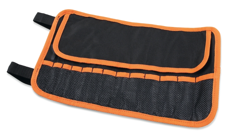 Caratteristiche:13 pratici scomparti portautensili di diversa dimensioneComoda da trasportare grazie alla maniglia centrale in tessuto rinforzatoDotata di pateletta interna per evitare la fuoriuscita degli utensiliCuciture di rinforzo presenti su tutto ilperimetro della bustaDoppia chiusura con velcroDimensioni aperta: mm 330 x 190