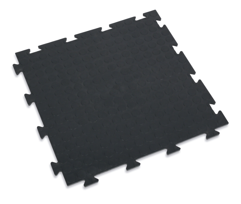 Perfetto complemento per le linee d'arredo officina e i banchi da lavoro Beta. Caratteristiche principali: Superficie con disegno in rilievo a bolle Testato per la resistenza al fuoco secondo la norma EN 13501-1 Grado antiscivolo R10 secondo la normaDIN EN 16165 Resistente alla maggior parte di solventi e agenti chimici Buon isolamento acustico e termico Facile da pulire Sistema di montaggio ad incastro