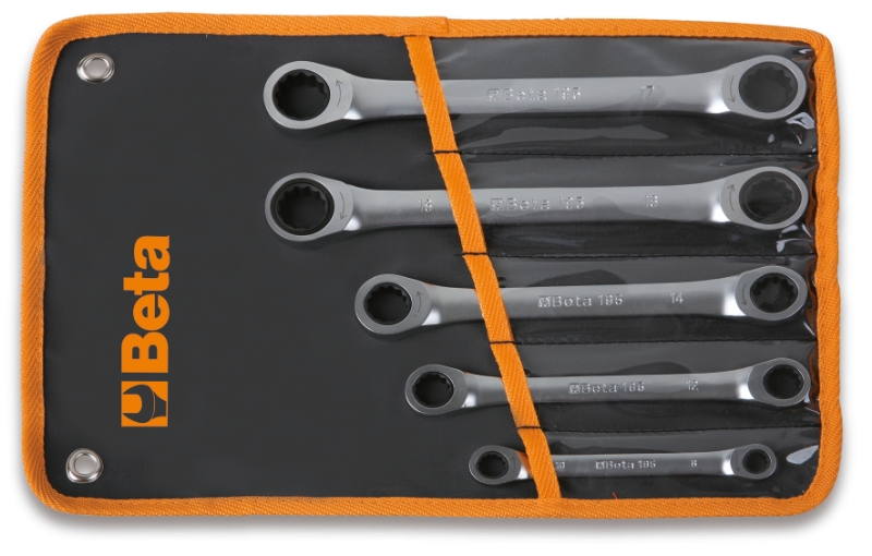 serie di 5 chiavi poligonali doppie diritte a cricchetto (art. 195) in busta8x10-12x13-14x1516x18-17x19 mm
