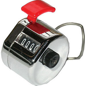 Per contare rapidamente oggetti in movimento. Si impugna infilando l’anello in un dito della mano. Gli impulsi vengono dati con un dito alla levetta superiore. Azzeramento istantaneo mediante bottone godronato. Altezza cifre mm 3,5. Numero cifre 4.