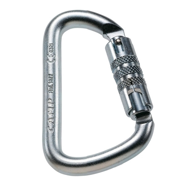 Moschettone acciaio carbonio finitura zincata Chiusura a molla Lunghezza mm 114 - Peso g 270 Apertura sicurezza con doppia azione mm 24 Resistenza Kn 52 - Norme EN 362 - EN12275